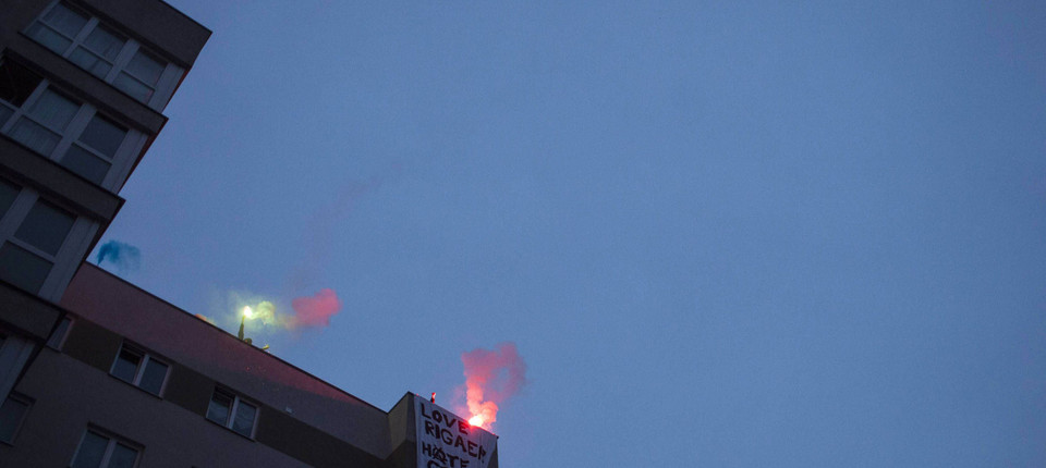In der Realität fühlt sich dieser Dienstagabend so gefährlich an wie ein Kaffeekränzchen in Wilmersdorf. Schwalben flitzen durch den Abendhimmel, ein Hundewelpe bellt einem Rollkoffer hinterher. Kleine Gruppen haben sich auf den Straßenecken niedergelassen, Getränke und Snacks kommen aus der „Bäckerei 2000“ gegenüber. Der Samariterkiez ist heute eine begehrte Wohnlage, in der Rigaer Straße koexistieren Neubauten, renovierte Altbauten und bunt bemalte Häuser, von denen die Transparente der Anarchisten hängen. Mehrere verfallene Altbauten der DDR wurden nach der Wende von linken Hausbesetzern bewohnt, denen die Stadt in den Neunzigern Mietverträge anbot. Es war eine politische Entscheidung, sie sollte die Gegend befrieden. Später aber verkaufte Berlin massenhaft Häuser an Meistbietende, auch die Liebigstraße 14. Als der Neubesitzer das Haus 2011 räumen ließ, gab es Krawalle. Die Szene fürchtet, dass es jetzt auch die Rigaer Straße 94 trifft, ihre letzte Bastion, ihr Symbol.
