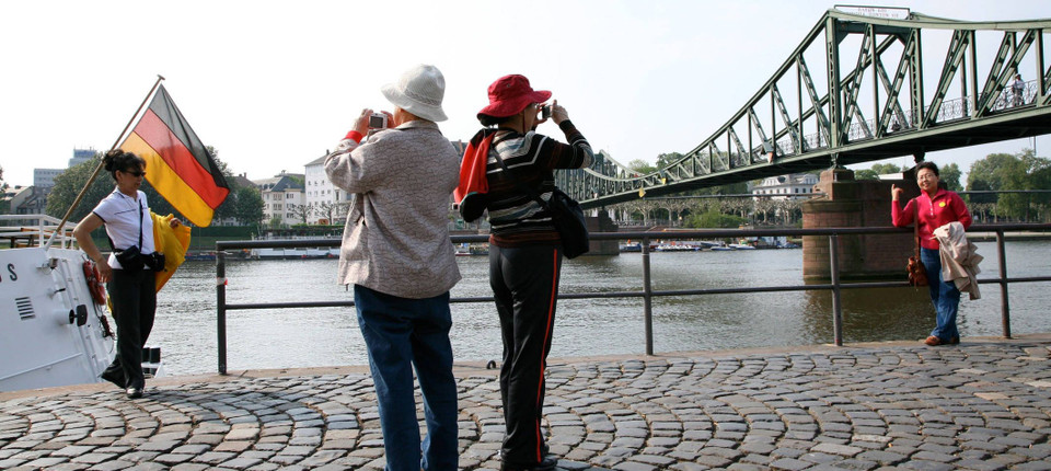 Beliebte Destination: Chinesische Touristen am Finanzplatz Frankfurt Bild: LAIF