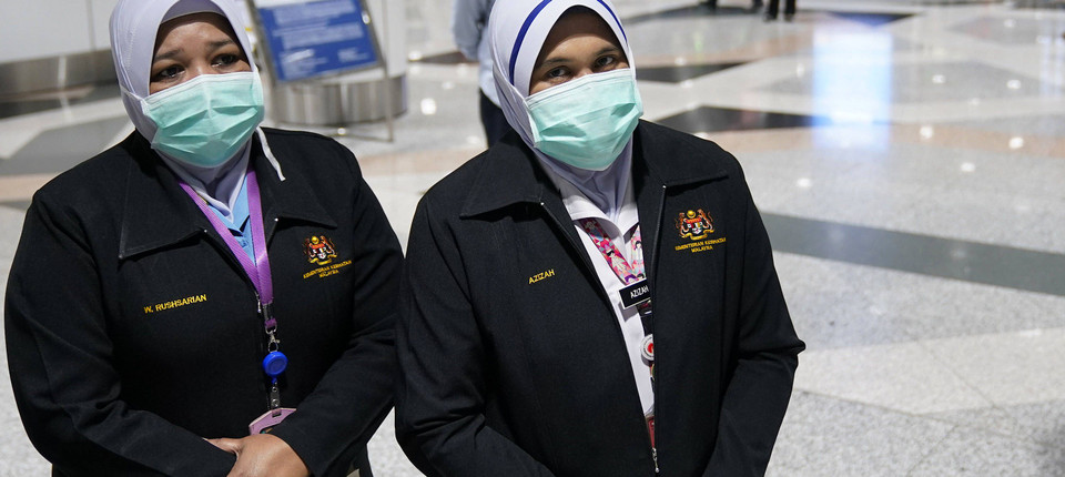 Schutzmaßnahmen in Malaysia: Personal der Gesundheitsbehörde auf dem Flugplatz von Kuala Lumpur. Bild: dpa