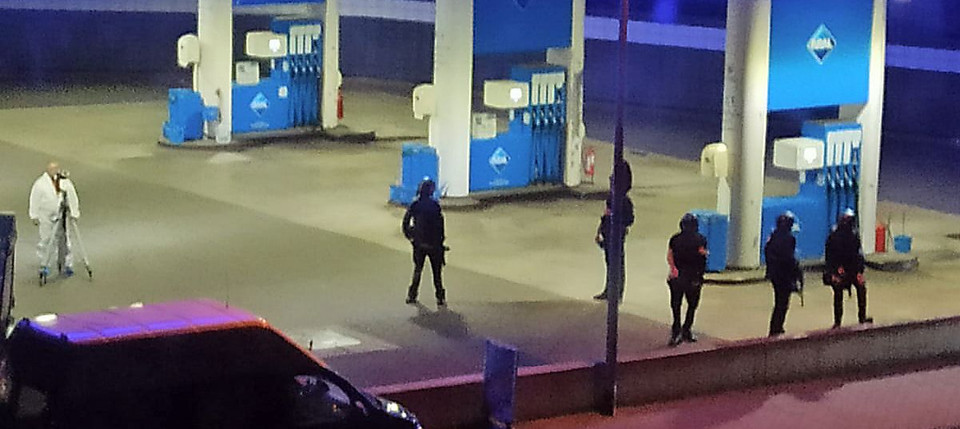 Polizisten sichern die Tankstelle in Idar-Oberstein, nachdem dort ein Angestellter erschossen wurde. Bild: dpa
