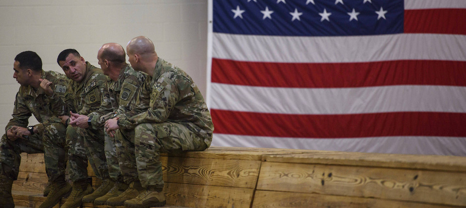 Amerikanische Soldaten warten am Samstag in Fort Bragg auf ihre Reise in den Nahen Osten. Bild: AP