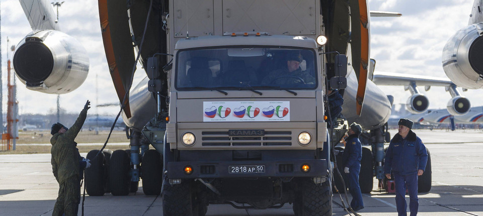 „Aus Russland mit Liebe“ - Russische Hilfslieferung auf dem Weg nach Italien. Bild: dpa