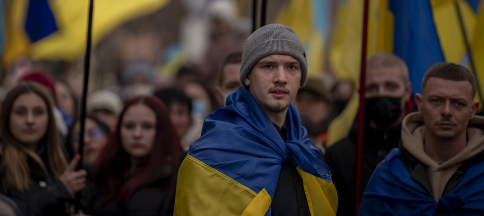 Proteste gegen einen möglichen russischen Einmarsch: Demonstranten am 20. Februar in der ukrainischen Stadt Odessa Bild: AP