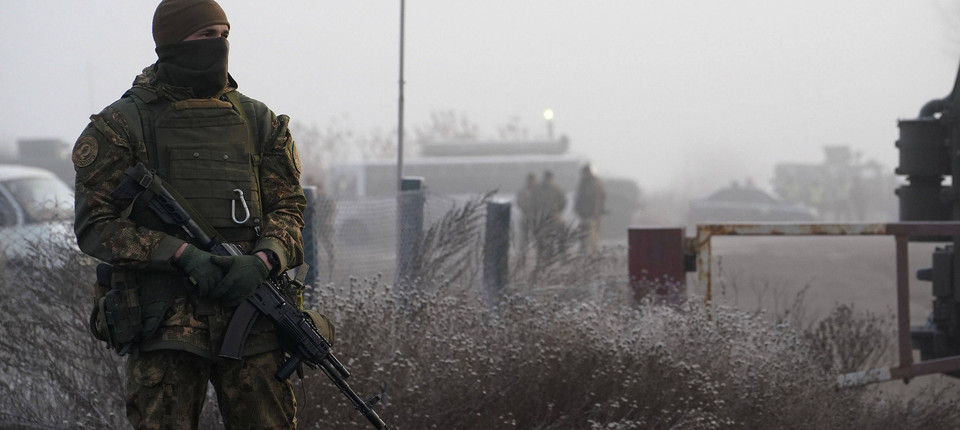 Ein ukrainischer Soldat bewacht im Dezember 2019 während eines Gefangenenaustausches zwischen der Regierung in Kiew und den prorussischen Separatisten ein Gebiet in der Nähe von Odradiwka in der Ostukraine. Bild: dpa
