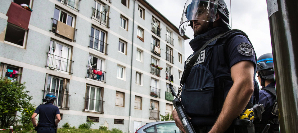 Nach den Anschlägen: Polizist in Val Notre Dame in der Nähe von Paris. Bild: dpa