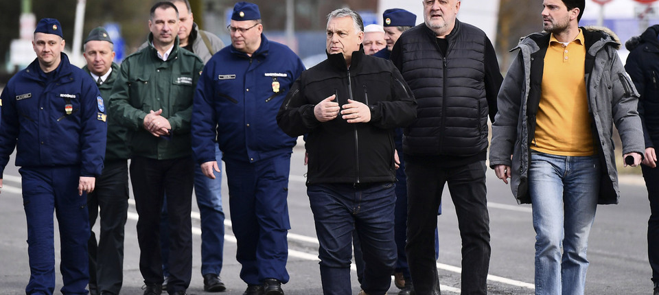 Auch Solidarität mit ukrainischen Flüchtlingen: Ungarns Ministerpräsident Viktor Orbán am Samstag am Grenzübergang Beregsurany Bild: AP