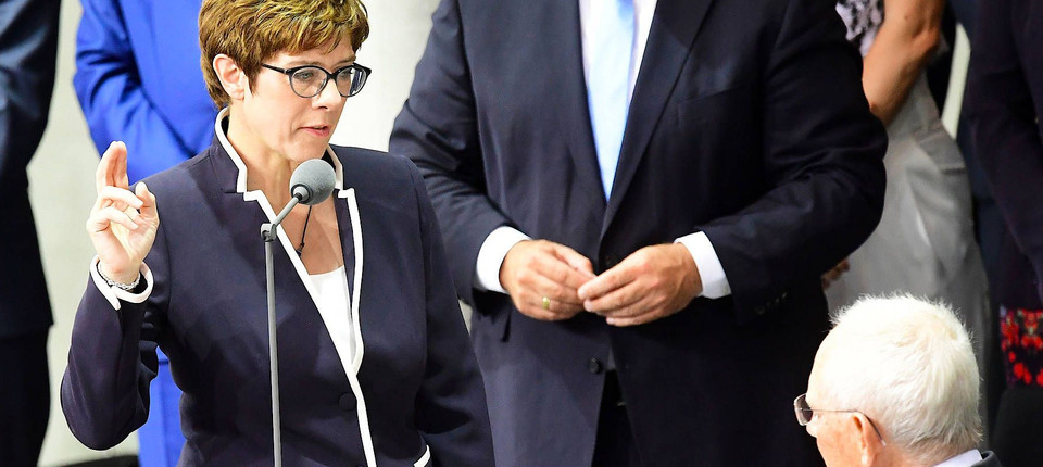 Annegret Kramp-Karrenbauer bei ihrer Vereidigung zur Verteidigungsministerin im Paul-Löbe-Haus des Deutschen Bundestags am 24. Juni 2019 Bild: EPA