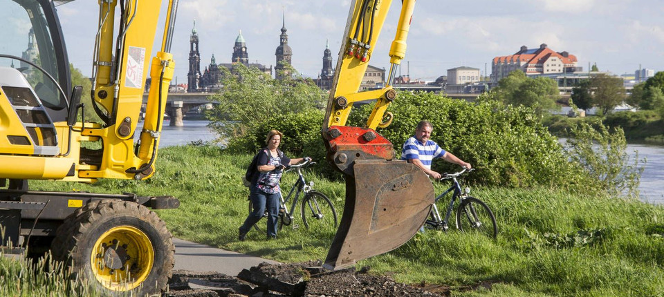 Der Dresdner an sich sei ein Gemütsmensch, heißt es, der, wenn die Lage unübersichtlich werde, erstmal in Ruhe einen Kaffee trinke. Verlassen sollte man sich darauf allerdings nicht, denn ihm wird auch nachgesagt, Dynamit im Blut zu haben. Was das heißt, war jüngst mitten in der Stadt zu beobachten: Die Dresdner Architektin Regine Töberich, 50 Jahre alt, blondes Haar, warf sich einen olivgrünen Parka über, setzte eine Sonnenbrille auf und schnippte mit den Fingern, woraufhin zwei Bagger aus dem Gebüsch an die Elbe rollten und ihre Schaufeln tief in das dort verlaufende Asphaltband gruben. Eine halbe Stunde später lagen exakt 59 Meter des internationalen Elberadwegs Spindlermühle - Cuxhaven in Trümmern, und Töberich gab entschlossene Interviews, es dem Stadtrat jetzt aber mal so richtig gezeigt zu haben.