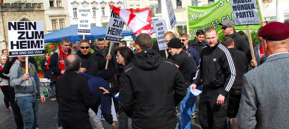 Nach Polizeiangaben hatten etwa 50 Neonazis die von schätzungsweise 200 Menschen besuchte Veranstaltung auf dem Markt gestürmt. Auf einem Plakat gaben sich die Angreifer nach Angaben von Augenzeugen als „Junge Nationaldemokraten“ aus, das ist die Jugendorganisation der rechtsextremen NPD.