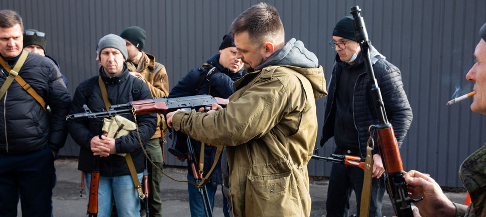Mitglieder der ukrainischen Reservetruppen bei der Ausgabe von Waffen in Kiew am 25. Februar Bild: Reuters