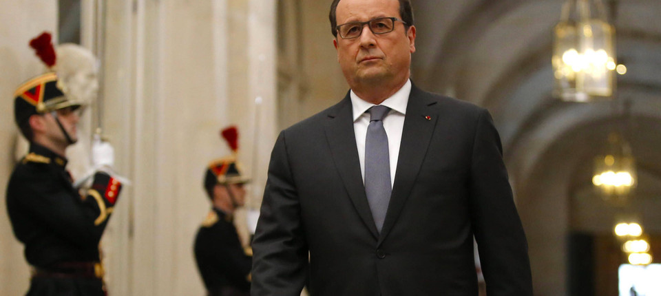 Entschlossen: Frankreichs Präsident Hollande am Montag vor seiner Rede in Versailles Bild: AP
