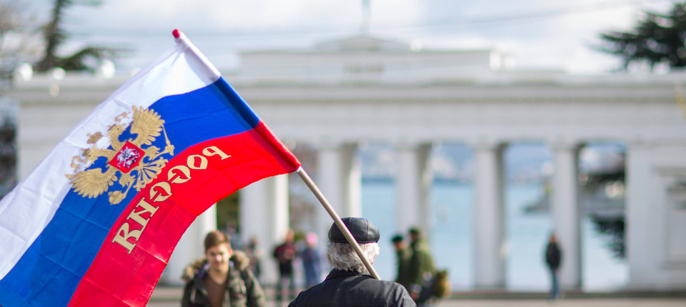 Die Russland-Fahne am 16.03.2014 an der Promenade in Sewastopol, Ukraine Bild: dpa