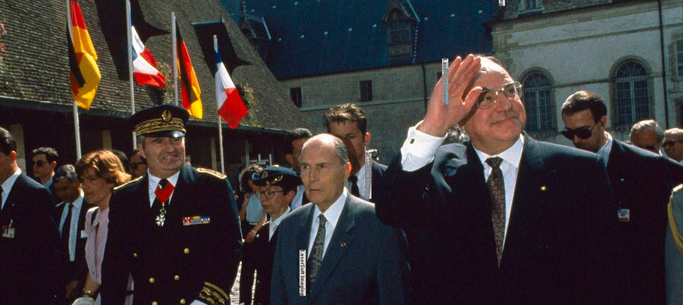 Staatspräsident Mitterand und Kanzler Kohl im Mai 1993 in Beaune Bild: J.M. Turpin