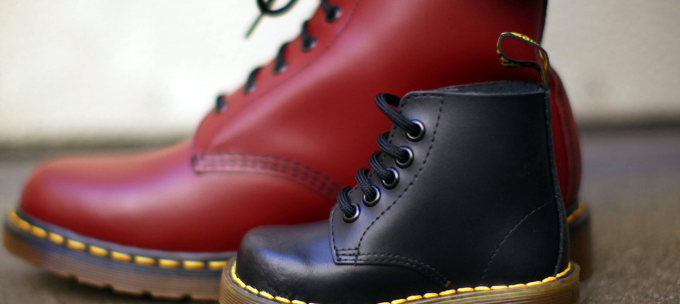 Zu diesem Outfit gehörten Dr.-Martens-Stiefel unweigerlich dazu, ebenso wie die French-Crop-Frisur, ein harter Schnitt mit ausrasiertem Nacken und millimeterkurzen Seiten. Dr.-Martens-Stiefel sollten fortan mit dem Image der Rebellion verknüpft sein. „Allein die Assoziation mit dem Skinhead-Style hat dazu beigetragen”, sagt Bill Osgerby, ein britischer Historiker, der den Einfluss von Subkulturen auf Mode untersucht. Die Anhänger der Skinhead-Szene trugen viele verschiedene Stiefel, sagt Osgerby – aber die Dr. Martens blieben. Und wurden von nun an stets mit den Skinheads und ihrem fragwürdigen Ruf in Verbindung gebracht. „Zu dieser Zeit gab es zwei Farben, schwarz und cherry. Der klassische Skinhead-Stiefel kam in cherry, das ist ein Haselnussbraun, mit acht Löchern.