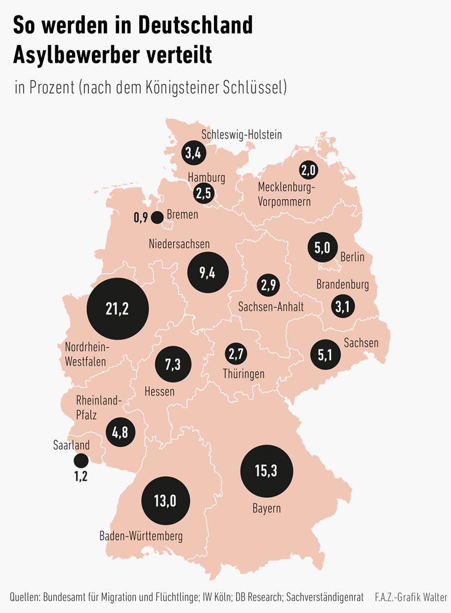 Dass in solchen Konflikten politischer Sprengstoff steckt, zeigt sich vor allem dort, wo andere verdrängt werden. Das gilt insbesondere für die Großstädte, in denen es - anders als etwa in einigen Teilen Ostdeutschlands - kaum leerstehende Gebäude oder Hotels gibt, die man mal eben in Flüchtlingsheime umwandeln kann. Wenn dort Neue kommen, müssen zuweilen Alte weichen. Da gehen die Bürger schnell auf der Straße. Als etwa einem Frankfurter Hort kürzlich die Räumlichkeiten gekündigt werden sollten, um Flüchtlingskinder in dem Gebäude unterzubringen, empörten sich verständlicherweise die Eltern mächtig. Danach wurde die Kündigung schnell wieder zurückgenommen, man sucht seither nach Alternativen.