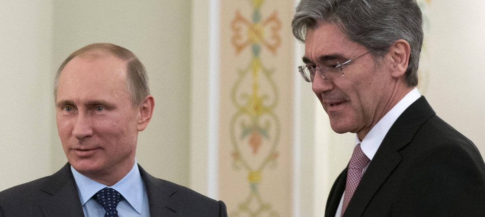 Enge Partnerschaft: Siemens Vorstandsvorsitzender Joe Kaeser und Wladimir Putin bei einem Treffen im März 2014 Bild: dpa